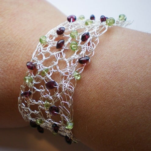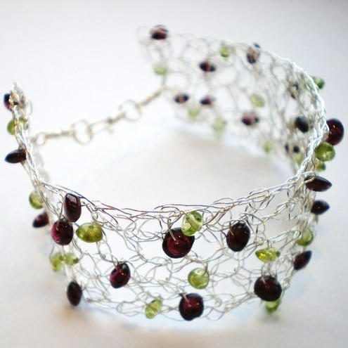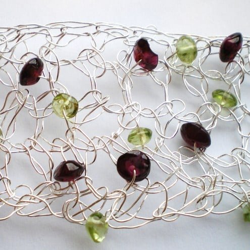 I have decorated this beautiful bracelet garnet and peridot pebbles.