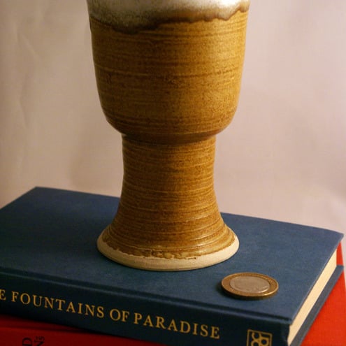 A single stoneware wine goblet. Handmade Stoneware Pottery by littlewrenpottery on Folksy.