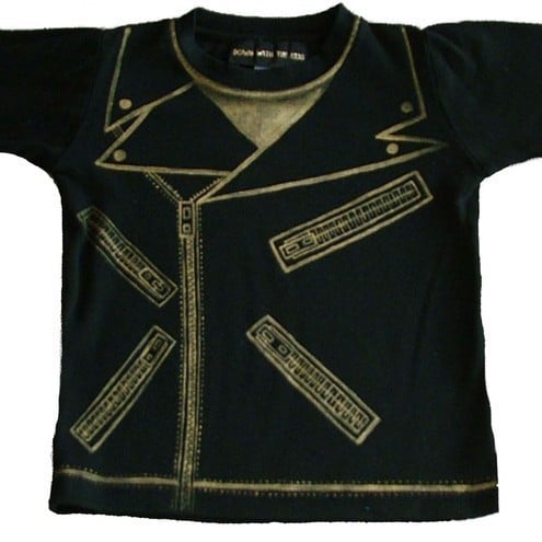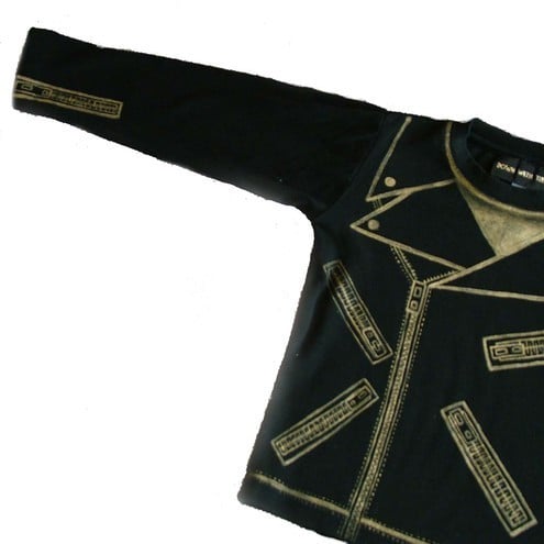 Long sleeved, Hand Painted Biker Jacket T-shirt. each stitch is painted by hand making every tiny T unique to the tiny owner