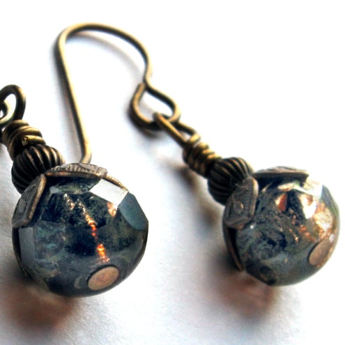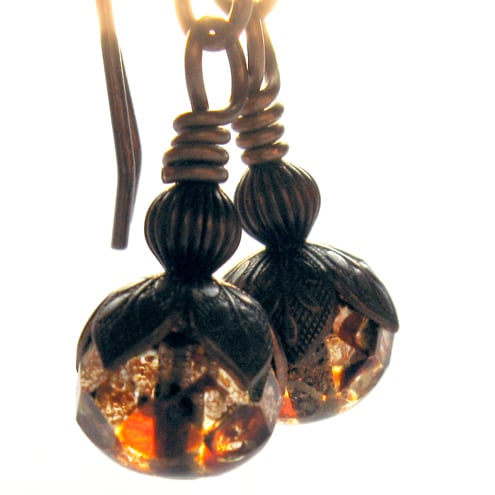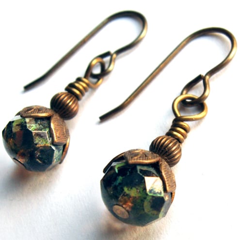 Handmade earrings with beautiful little flowers made from floral brass beadcaps and faceted Czech glass.