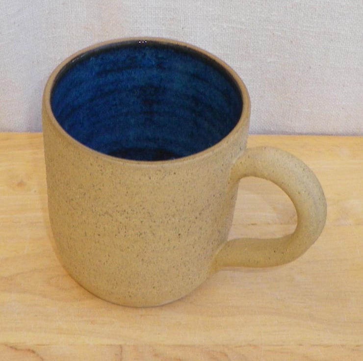 Finished in beautiful royal blue reactive glaze ...but just on the inside ....to show off the nice texture of the clay.