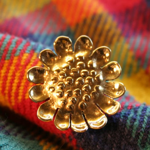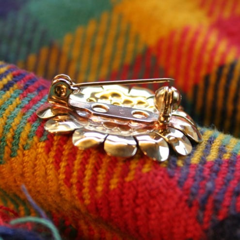 It has a a safety catch soldered to the back and is lacquered to prevent fingerprints.