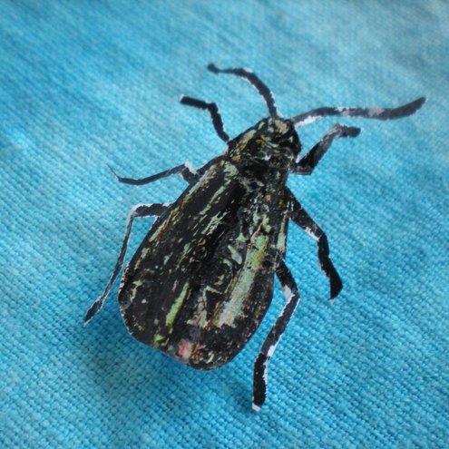 There is a spare auxiliary beetle in case Alexander Beetle gets lonely. Both are embellished with gleam from coloured gilding foil.