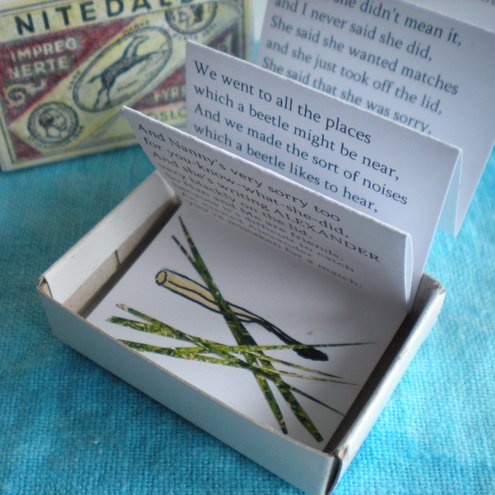 Inside this matchbox is an accordion card fold with a poem and a surprise…