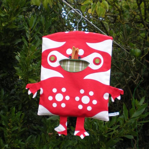 His two faces/openings make him twice as user friendly, while you peg your clothes onto the line; it doesn’t matter whichever way he twists or turns on the line; you can easily reach one of the two openings. Plus he may just make you grin when he's is hanging out about the house between washdays; (let’s face it, winter isn't such a joy for pegbags so you may as well have a cute one to look at indoors).