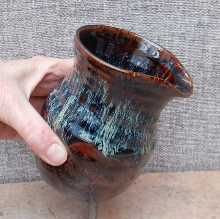 Handthrown on my pottery wheel using strong ivory stoneware clay, and finished in a lovely dark chocolate brown with a runny ivory glaze over the top.